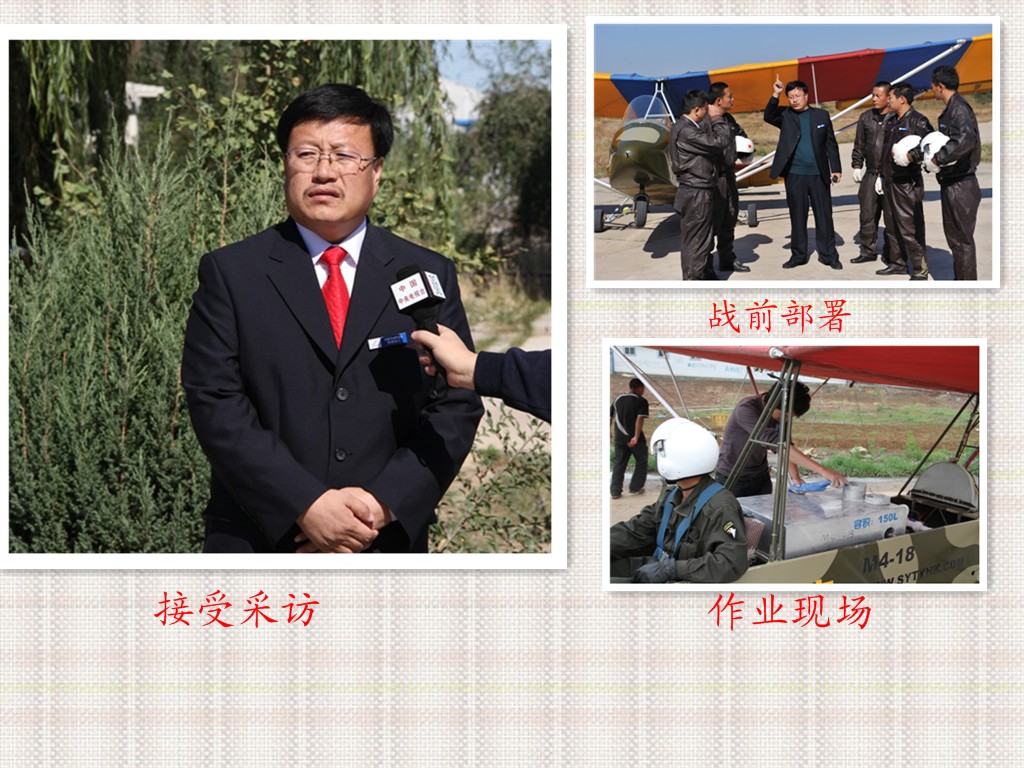 在祖國版圖的北方,茫茫的科爾沁沙地上活躍著一支以下崗職工創(chuàng)建的充滿傳奇色彩的隊伍--通遼市神鷹通用航空有限公司,他是全國第一家以超輕型飛機注冊的中國通用航空企業(yè),同時也是全國第一家集飛機播種、空中施肥、空中噴灑植物調(diào)節(jié)劑、空中除草、防治農(nóng)林牧業(yè)病蟲害、草原滅鼠、防治衛(wèi)生害蟲、航空護林、空中拍照、私用飛行駕駛執(zhí)照培訓、航空運動訓練飛行、航空運動表演飛行、個人娛樂飛行為主營業(yè)務的綜合性通用航空企業(yè)?,F(xiàn)有超輕型飛機30余架,號稱中國私人第一飛行機群,從業(yè)人員70余人的專業(yè)進行農(nóng)林牧業(yè)作業(yè)的社會福利型團隊,多年來在防治農(nóng)林牧業(yè)病蟲害工作中默默無聞的為改善祖國生態(tài)環(huán)境做著不懈的努力,截止201091日,在我國山東省、河北省、遼寧省、吉林省、內(nèi)蒙古自治區(qū)共進行飛機防治農(nóng)林牧業(yè)病蟲害和飛機播種2500萬畝,積極參與了“綠色奧運環(huán)保飛行”、國家項目“京津唐風沙源治理工程”、“遼寧省荒山治理工程”、“內(nèi)蒙古荒沙荒山治理工程”等多項國家“十一.五”期間重點工程項目,特別是2008年以后,在我國北方沿海地區(qū)美國白蛾泛濫,公司上下齊動員在蟲災最嚴重的河北省、山東省連續(xù)三年作業(yè),為抑制美國白蛾在我國大面積泛濫做出不懈努力,得到當?shù)卣陀嘘P(guān)單位的一致好評,2009--2010年內(nèi)蒙古自治區(qū)西部蝗蟲泛濫,大片農(nóng)田、草原頃刻間被吞噬,神鷹航空公司義不容辭,積極參加到與自然災害作斗爭的現(xiàn)場,以一絲不茍、認真負責的精神,在自然環(huán)境極其艱苦的條件下很好的完成任務,許下了“蝗蟲不滅不回家”的豪言壯語。得到有關(guān)部門和廣大群眾的一致好評。